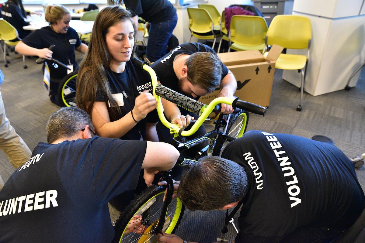 - 绿箭公司金融团队60名员工搭乘53辆单车期望轮子整个二年级课堂 丹佛Colo早上搭建后 员工花下午出人意料 搭配头盔修补脚踏车
