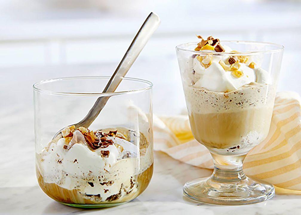 一个独特的,丰富的甜品,提高在不到10分钟吗?我们在!这美味的甜点食谱是完美的结束任何一餐!简单的泡你O有机咖啡,倒在冰淇淋和奶油,巧克力削片和花生糖!配方