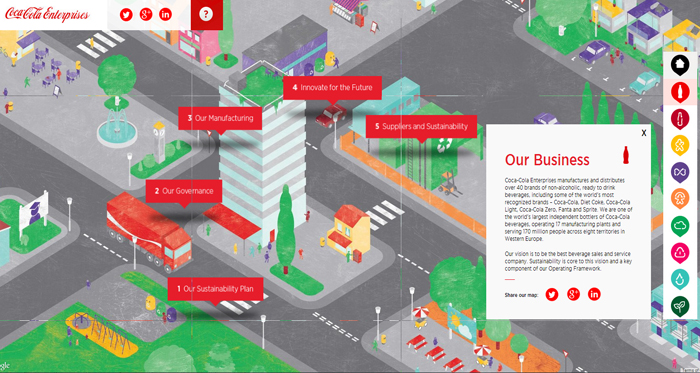 连续第二年,游客可以浏览一个虚拟地图提供了一个入口点来发现和了解更多关于CCE的可持续性承诺,该公司是如何解决他们在其价值链的各个方面。金博宝怎么注册现在丰富的地图功能视频、报价、图表,以及员工的聚光灯。