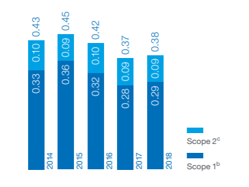 微粒排放持平而氮氧化物和二氧化硫排放量略有下降,反映了过去三年相对稳定的结果。温室气体(GHG)排放,测量作为强度值(吨二氧化碳/ admt),高于09主要是低生产率的函数作为萨默塞特机产生更少的材料由于纸机1的重建,看到条形图。我们也测量绝对GHG范围1和范围2排放对于每个轧机,反映在条形图。