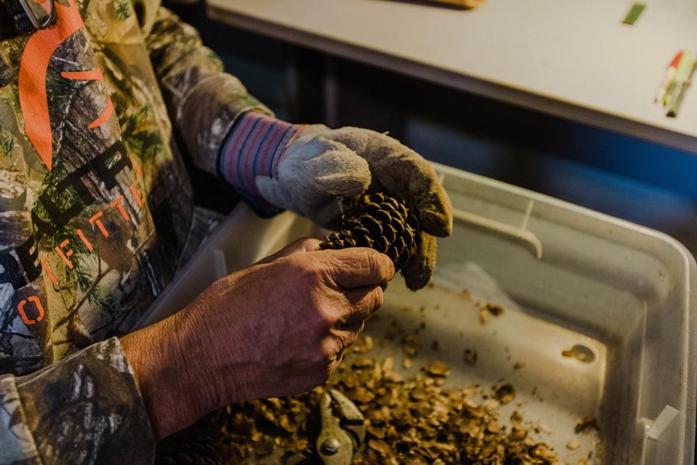 秋天,松树完全成熟 准备采摘时间必须完美:我们选择锥子时,它们的尺度仍然紧闭,以确保所有种子仍然安全嵌入锥子内。但它们必须成熟到它们的脉冲强度 足以在摘取后打开尺度多年林业研究确定 矩形完全正确点 当它们有.87具体重力