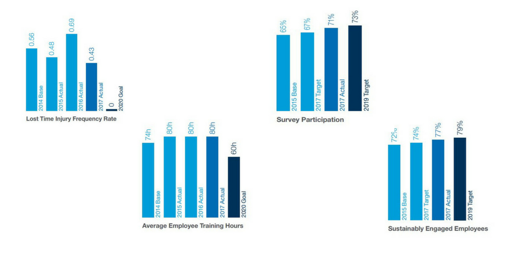 保有熟练劳动力对于实现复杂制造操作和商业管理系统高性能至关重要继续致力于员工培训,2017年平均实现员工80小时培训,这与前一年一致并远超目标