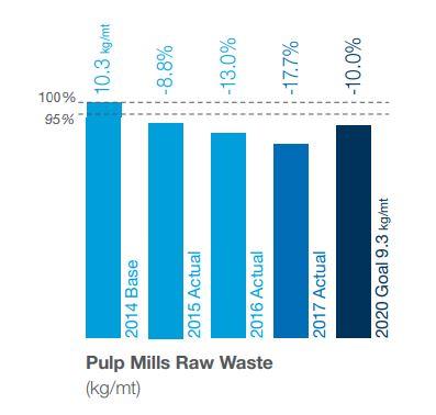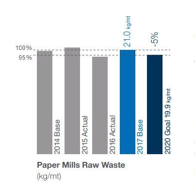 继续逐年减少纸浆厂损失,尽管超过了原创目标今年磨坊进一步减损,比2014年基准总减17.7%。