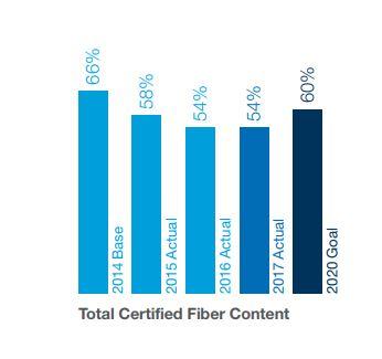 我们2014基年实现66%认证纤维反映了高水平kraft纸浆的混合作用,这些纸浆在纸浆厂转换后为Cloquet网站制造解构木浆(和kraft)。自那以来,当我们在克洛格特制造更多Kraft纸浆时,证书编辑水平下降54%的当前证书编辑机水平 和微量有限证书化ed木 位于经济运输范围 面向我们两个纸浆厂
