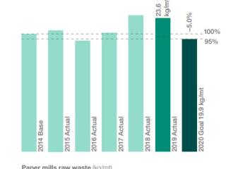 原材料的使用效率提高了前端节省成本、减少环境影响,降低垃圾处理费用。为了实现这些利益,我们有独立的制浆和造纸过程领域的目标。纸浆,我们有针对性的损失减少10%,到2020年,而对于造纸厂,我们建立了一个到2020年减少5%的目标。