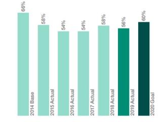对纸浆厂的损失,我们已经超过了五年的目标,达到减少24.6%在2014年的基础。相比之下,造纸厂损失比2014年高出13%的基线。虽然这代表比去年略有提高,重大进展将需要达到2020年的目标。今年以来的结果主要是由市场驱动的缩减(高排污损失,由于机器创业和关闭,加上少的吨),我们预计2020年更好的性能,因为机器与富勒订单安定下来。