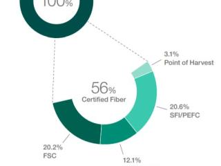 我们的认证目标跟踪认证木材纤维的数量在我们三个制造业务(Matane明年将报告)。系统网络体系结构(SNA)的所有美国纸和包装工厂三重认证按照全球领先的可持续林业的保管链认证系统,包括森林管理委员会®(FSC®-C014955),可持续林业倡议®(SFI®)计划和项目的支持森林认证™(PEFC™)。